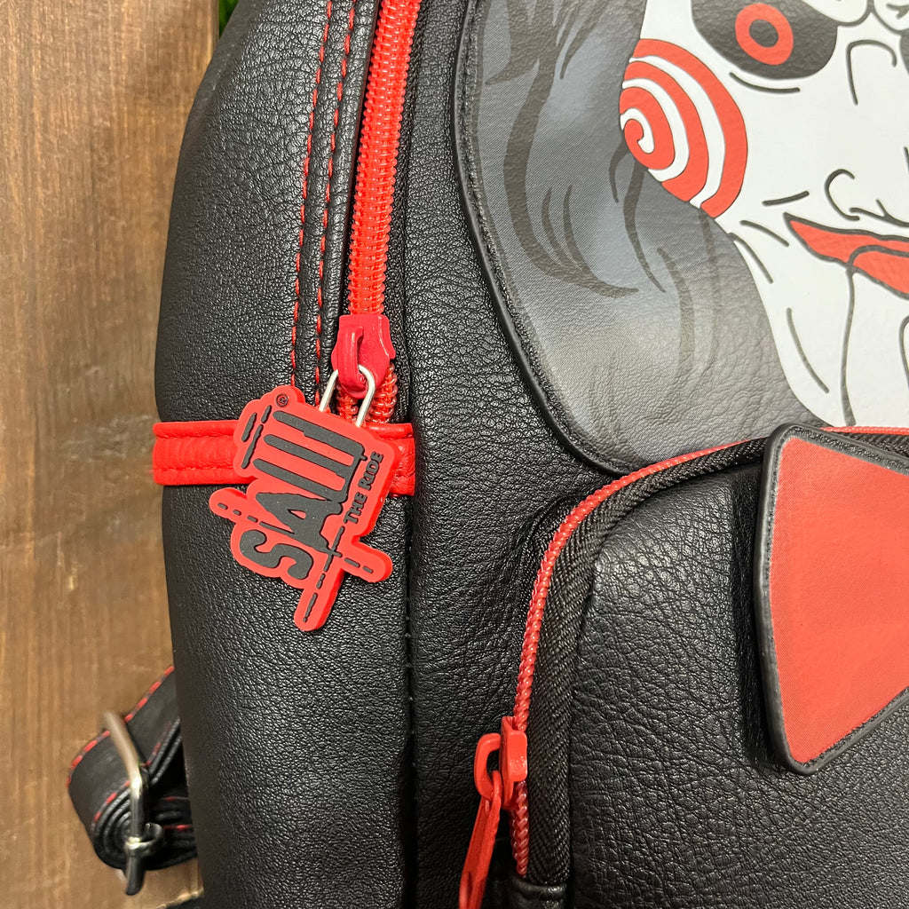 Mini SAW - The Ride backpack with Billy front & embroidered text - featuring a rubber logo zip pull, interior print & adjustable straps