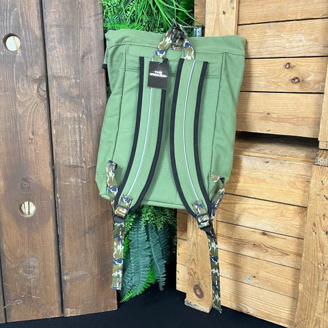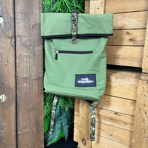 Fold top The SWARM rucksack with camo detail & additional front zip - logo detail & adjustable straps